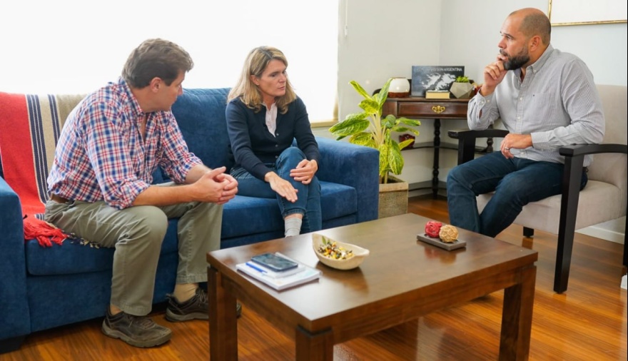 El Gobernador Gustavo Melella, junto al Ministro Jefe de Gabinete, Agustín Tita, mantuvo una reunión con la CEO de Total Austral, Catherine Remy.