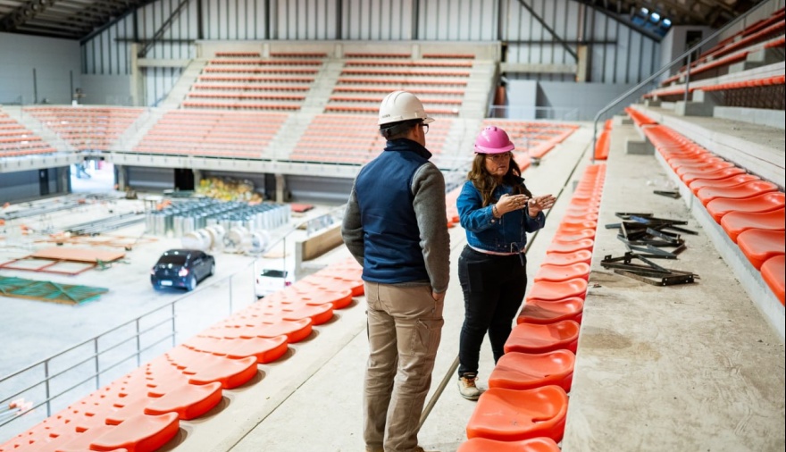 Por otra parte, la Ministra dio cuenta de los trabajos finales que se llevan adelante en el exterior del microestadio, detallando que “ya se están colocando las jirafas de iluminación y se realiza el trabajo de pintura para delimitar los espacios de estacionamiento, permitiendo el ordenamiento vehicular dentro del predio”.