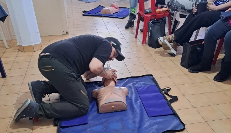 Se realizaron las maniobras de RCP y DEA, desobstrucción de la vía aérea, extracción de guantes, vendajes (espiral, en ocho, capelina), torniquete, hemorragias, quemaduras, posición lateral de seguridad, heridas e infecciones, convulsiones.