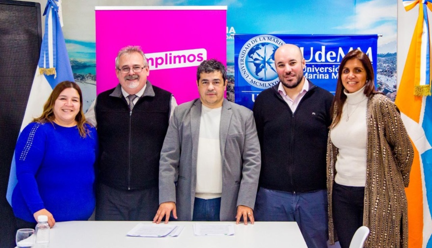 La Municipalidad de Ushuaia suscribió un convenio con la Universidad de la Marina Mercante (UMM) con el fin de impulsar la cooperación cultural, educativa y comunitaria entre ambas instituciones, y así contribuir al desarrollo educativo de la comunidad. La rúbrica estuvo a cargo del jefe de Gabinete del Municipio, Sebastián Iriarte, y del licenciado Pablo Cueto, director de Actividades Académicas Mediadas por Tecnología de la casa de altos estudios. Estuvieron presentes el secretario de Gobierno municipal, César Molina, y la subsecretaria de Gestión Integral del Recurso Humano, Gabriela Borré. Mediante el convenio la Universidad ofrecerá a la comunidad de Ushuaia su oferta de carreras de pregrado, grado y posgrado con importantes descuentos, beneficios y becas para el personal municipal. Cabe mencionar que la UMM cuenta con una Unidad de Apoyo de Educación a Distancia (UAED) mediante la cual se posiciona como una de las primeras a nivel nacional en este tipo de modalidad, que permitirá articular de manera permanente entre ambas instituciones para garantizar la excelencia educativa. Por su parte, el Municipio dispondrá del ámbito adecuado para el apoyo técnico necesario, con el objeto de garantizar y cubrir las necesidades que el dictado de cursos y carreras impone. En función de ello, la UAED funcionará en el aula de capacitación “Isabel Gutiérrez” ubicada en el microestadio Cochocho Vargas, inaugurada recientemente por el Municipio. Tras la firma Iriarte manifestó que “este convenio está relacionado con un plan de capacitación integral que estamos llevando adelante a través de la Jefatura de Gabinete” y que “involucra principalmente a los trabajadores y trabajadoras municipales pero que también aporta a la comunidad una oferta educativa de calidad”. Al respecto, consideró que “esto es muy importante para el desarrollo educativo en estos tiempos tan complicados en los que a muchas familias se les dificulta trasladar a sus hijos a otras provincias para estudiar una carrera universitaria, por lo que contar con una sede de la UMM en la ciudad es muy importante”. Finalmente, Iriarte remarcó que estas acciones “demuestran el compromiso efectivo de la gestión del intendente Walter Vuoto con la formación y perfeccionamiento de todo el personal municipal”.