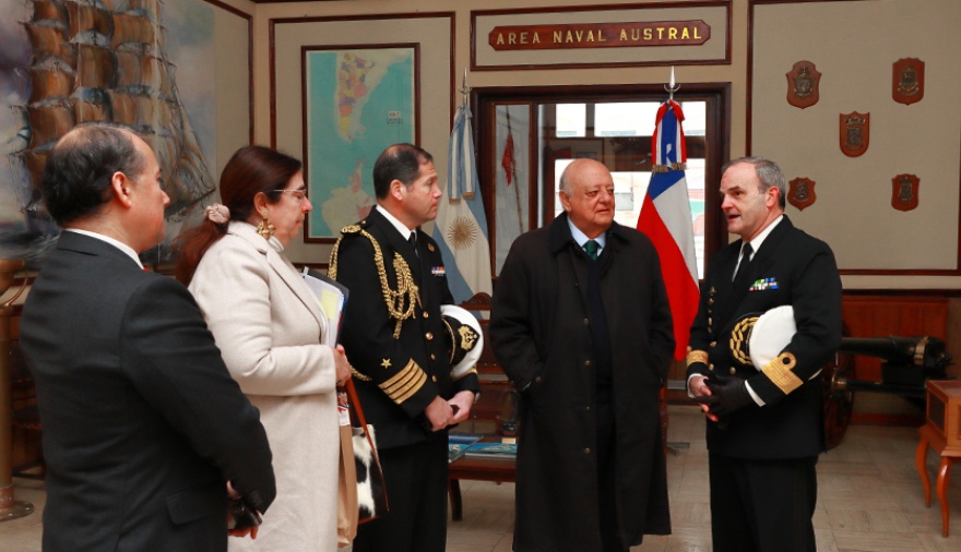 El Comandante del Área Naval Austral (ANAU), Comodoro de Marina José Alberto Martí Garro, recibió al Embajador de la República de Chile en Argentina, José Antonio Viera Gallo, en las instalaciones de la Base Naval Ushuaia.