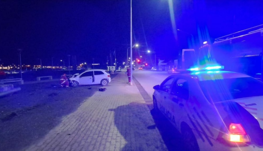 Esta madrugada a las 2:51 un automóvil marca Volkswagen Gold Trend de color blanco con dos personas a bordo, chocó contra una columna de alumbrado público de la Plaza Belgrano.
