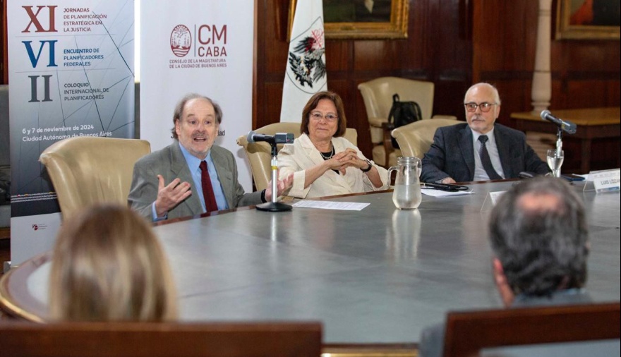 La Jueza del Superior Tribunal de Justicia, Dra. María del Carmen Battaini, estuvo a cargo de la apertura de la segunda jornada junto al Juez del TSJ de la Ciudad de Buenos Aires y Coordinador del Área de Planificación de la Ju.Fe.Jus, Dr. Luis Lozano.