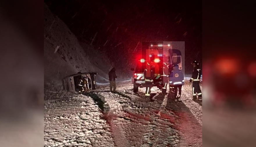 Este miércoles, dos camionetas de transporte de pasajeros protagonizaron vuelcos mientras circulaban por la ruta nacional Nº3; Algunas personas tuvieron lesiones y de carácter leve. El estado resbaladizo de la calzada, debido a la caída constante de nieve, habría sido el motivo que provocó los siniestros viales.