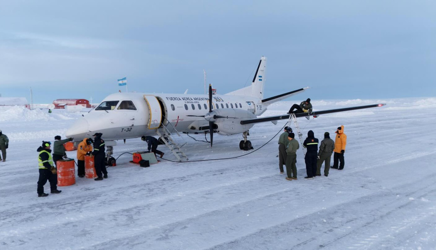 En una operación histórica, se realizó la primera Aeroevacuación Sanitaria Antártica llevada a cabo por el Sistema de Armas SAAB-340B de la Fuerza Aérea Argentina.