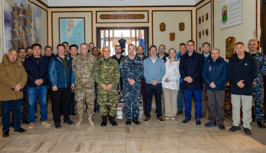 Oficiales superiores de las Fuerzas Armadas de Alemania, Brasil, Chile, China, Ecuador, España, Estados Unidos, Francia, Italia, Marruecos, Panamá, Perú, Rusia y Reino Unido fueron recibidos el sábado por la mañana en la Base Naval Ushuaia por el Comandante del Área Naval Austral, Contraalmirante Guillermo Alberto Prada, acompañado por los titulares de destinos con asiento en la ciudad.