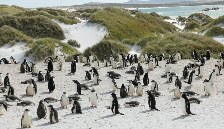 Yorke Bay, más conocida como Bahía Cangallo, es una playa cercana a Puerto Argentino y gran atracción para residentes locales y turistas por las colonias de pingüinos que ahí habitan.