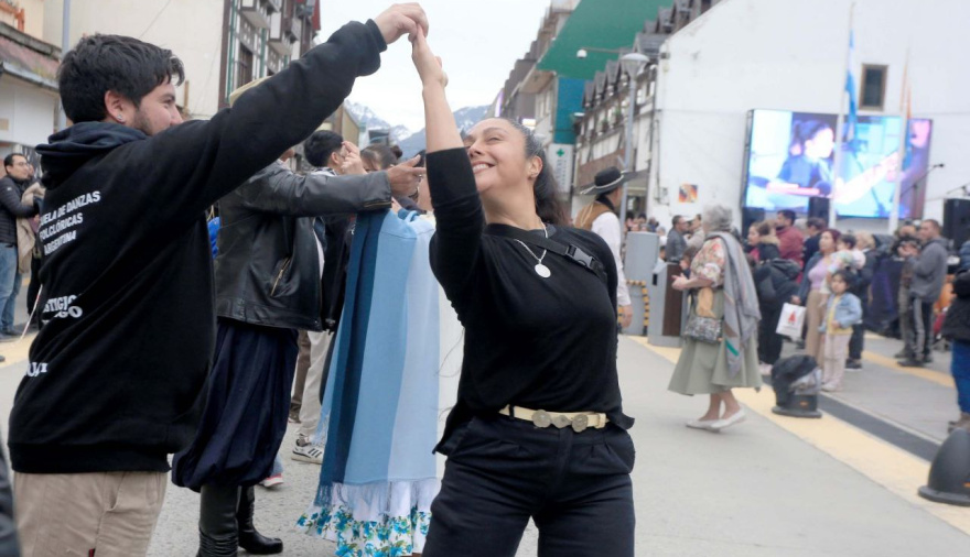 La Secretaría de Cultura y Educación de la Municipalidad de Ushuaia acompañó en la calle San Martín, junto a una multitud de vecinos, vecinas y turistas, la celebración del “Día de la Tradición” impulsada por el Centro Tradicionalista “Virginia Choquintel” donde se presentaron diversos espectáculos de danza y música en vivo. La tradicional propuesta, que transitó su 27° aniversario frente a las puertas de la Municipalidad en San Martín y Fadul, celebró el natalicio del popular José Hernández, autor del emblemático Martín Fierro, con las presentaciones de Nuestro Legado, La Telesita, Cruz del Sur quienes deleitaron con su danza, así como la música a carga de Ramón Barrenechea y Payru. Así también se realizó la formación de banderas, donde se entonó el Himno Nacional y la Marcha de Malvinas. Belén Molina, secretaria de Cultura y Educación, extendió a la gran cantidad de asistentes "el saludo de nuestro intendente Walter Vuoto, que desde su gestión siempre ha puesto el foco en acompañar estas propuestas populares. Para nosotros es un honor y un orgullo ser parte año a año de esta iniciativa que contiene a tantos artistas de nuestra ciudad festejando este evento popular donde debe ser: en la calle principal San Martín". “Aquí, junto a muchos turistas que seguramente podrán ver y disfrutar de estos espectáculos, conociendo más la cultura de nuestra tierra, lo que somos y fundamental lo que trasmite la cultura que también es soberanía, mostrando nuestra identidad”, finalizó Molina. Por su parte la presidenta del Centro Tradicionalista “Virginia Choquintel”, Susana Navarro agradeció a “la Municipalidad de Ushuaia y la Secretaría de Cultura y Educación, que siempre nos brinda su apoyo, algo que es fundamental y muy grande para el Centro Tradicionalista. Todo esto es gracias a la Secretaría de Cultura”.