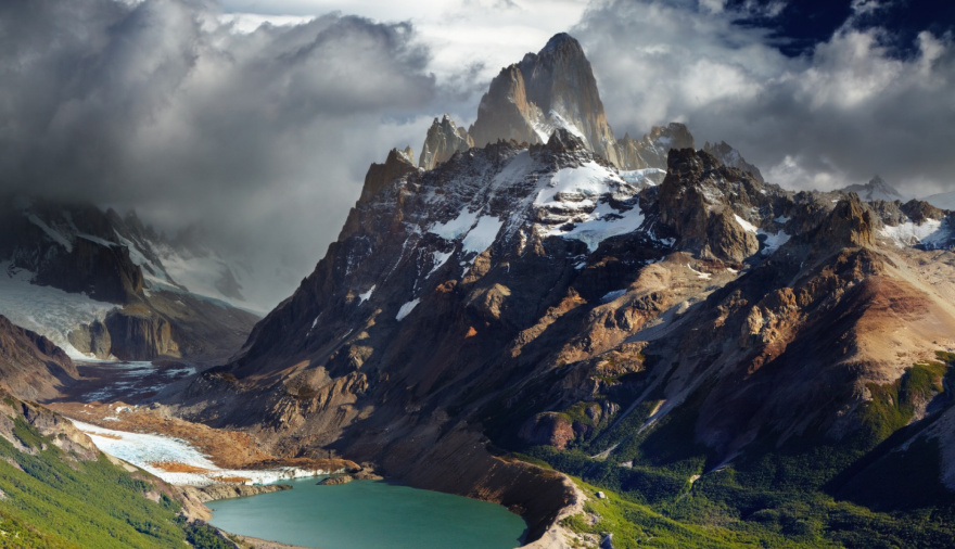 Se encuentra ubicado dentro de dos parques nacionales, el argentino Los Glaciares y el chileno Bernardo O'Higgins, junto a la localidad de El Chaltén. Su cumbre ofrece un espectáculo imponente, al asomar sus crestas y aristas entre glaciares y nubes. En ciertos momentos del día toma sorprendentes coloridos según la iluminación del sol.