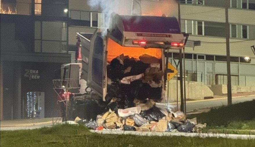 Este viernes por la noche se registró un principio de incendio en un camión recolector de residuos gastronómicos de la empresa Agrotécnica Fueguina, en la zona del Monumento al Centenario.