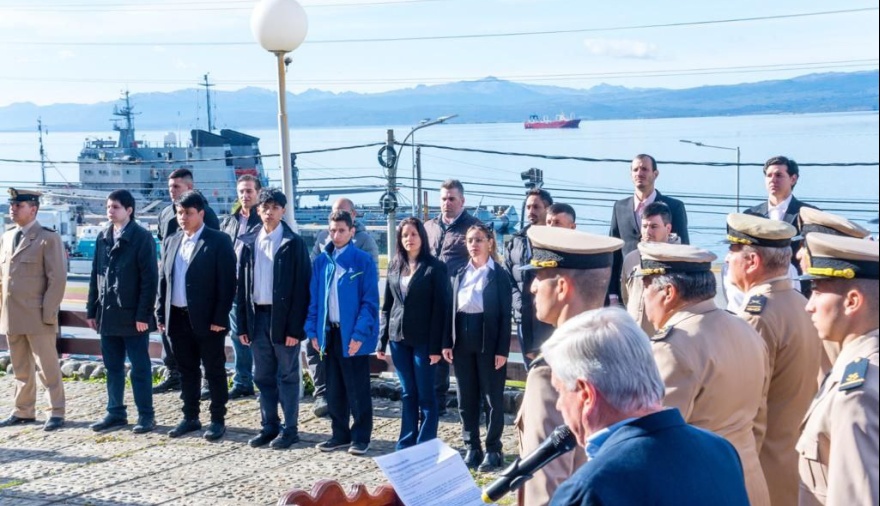 La ceremonia estuvo encabezada por el jefe de la Prefectura Ushuaia e Islas del Atlántico Sur, prefecto mayor Cristian Sarasúa y por el regente de la Escuela de Formación y Capacitación para el Personal de la Marina Mercante Ushuaia, prefecto general René Reibel.