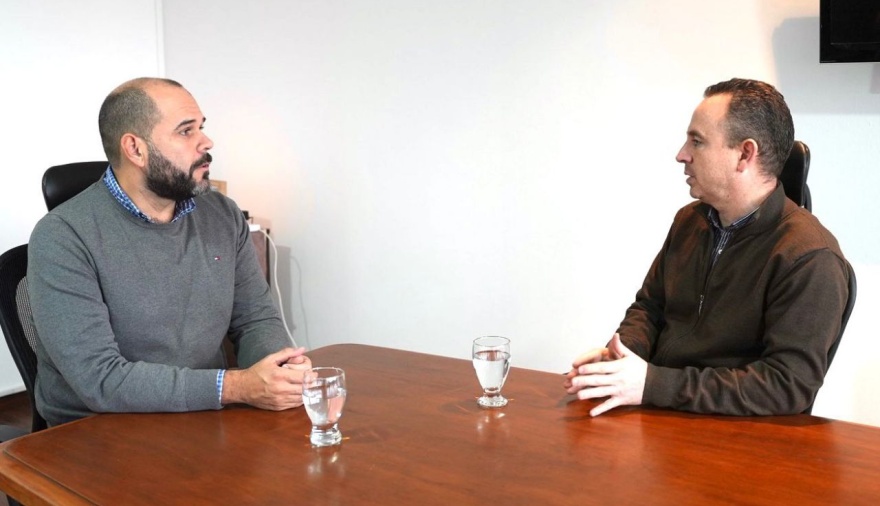 El ministro Jefe de Gabinete, Agustín Tita junto al secretario de Gobierno de la Municipalidad de Río Grande, Gastón Díaz; mantuvieron un encuentro en Casa de Gobierno, donde avanzaron en una agenda conjunta en pos de profundizar el trabajo de ambos ejecutivos.