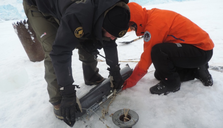 Para realizar esta tarea se realizó una perforación sobre la superficie del denominado pack ice con el fin de recolectar muestreas de agua y tomar registros de temperatura del agua, penetración de luz y demás variables ambientales, para su posterior análisis en el Laboratorio Perito Moreno, ubicado en la Base Antártica.