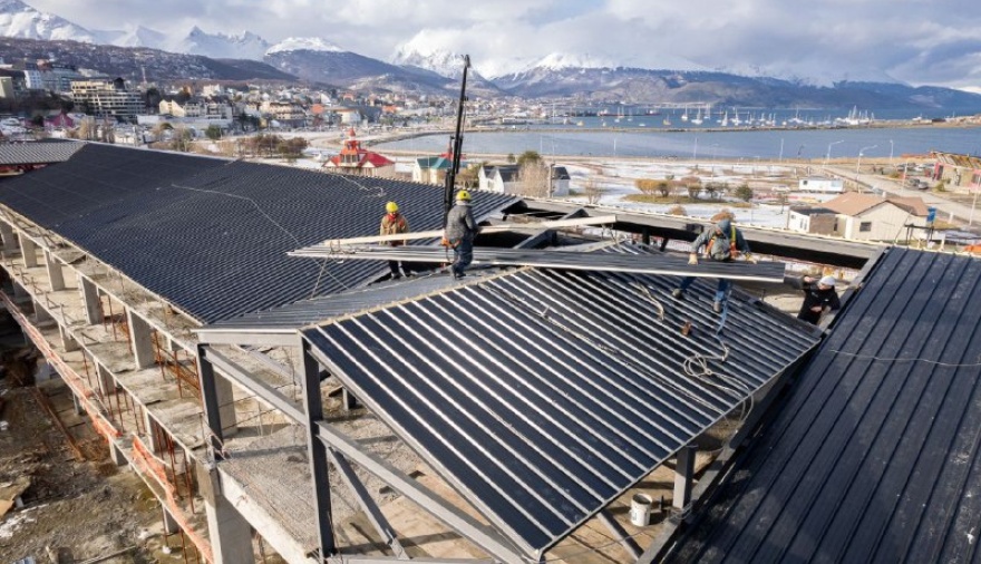 Concluyó la colocación del techo en la obra de ampliación del Hospital Regional Ushuaia